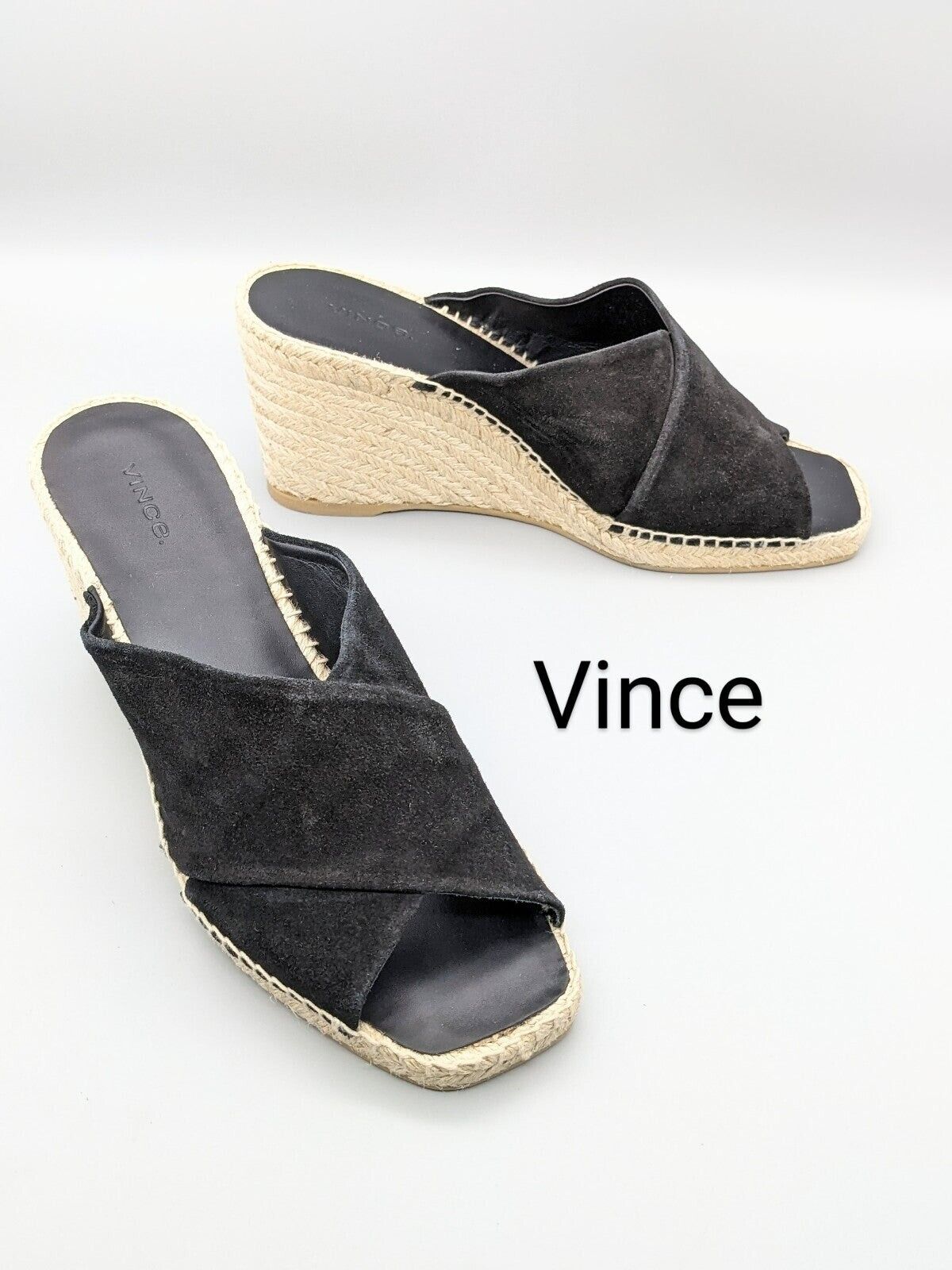 Vince Gaelan Square Toe Crisscross Espadrille Wedge Sandals Size 9.5M MSRP $250