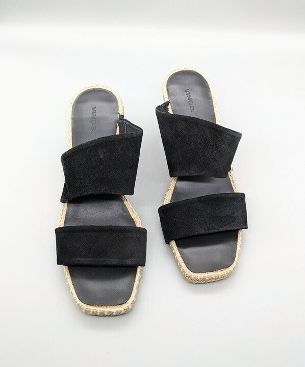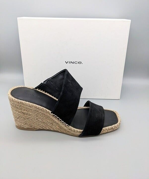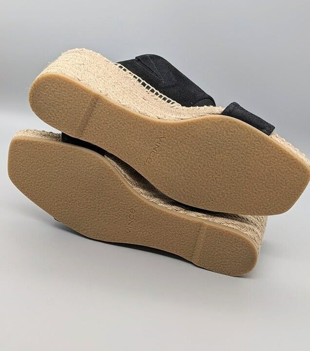 VINCE Garlin Women's Black Suede Wedge Espadrille Mules Size 10 M