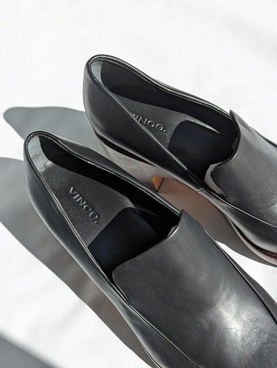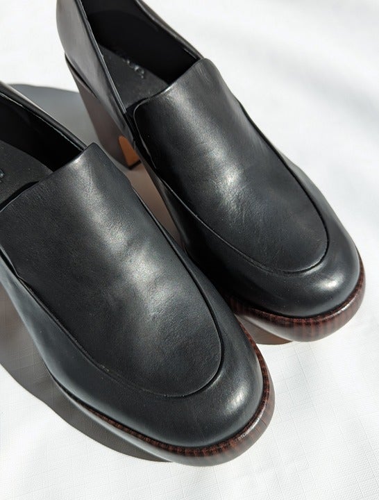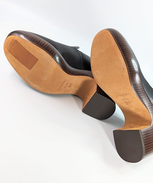 Vince Narissa Women's Black Leather Heeled Loafers Clogs Size 10 (MSRP $375)