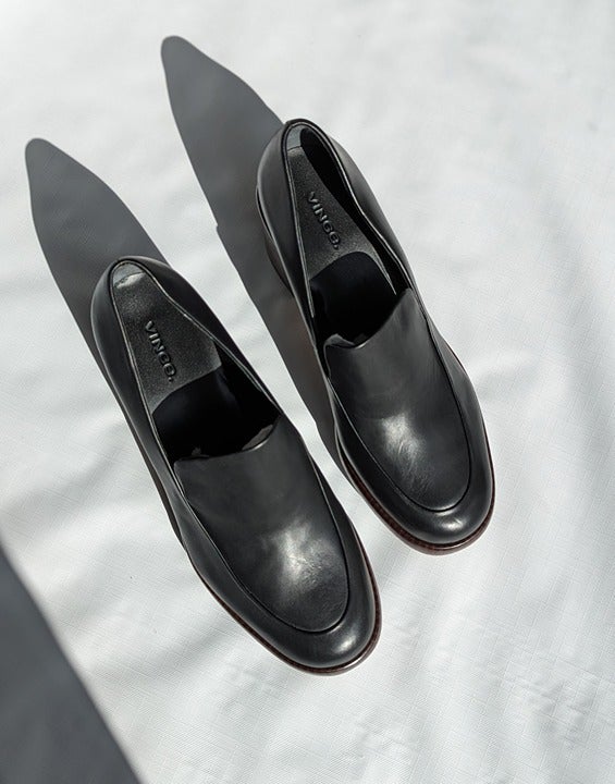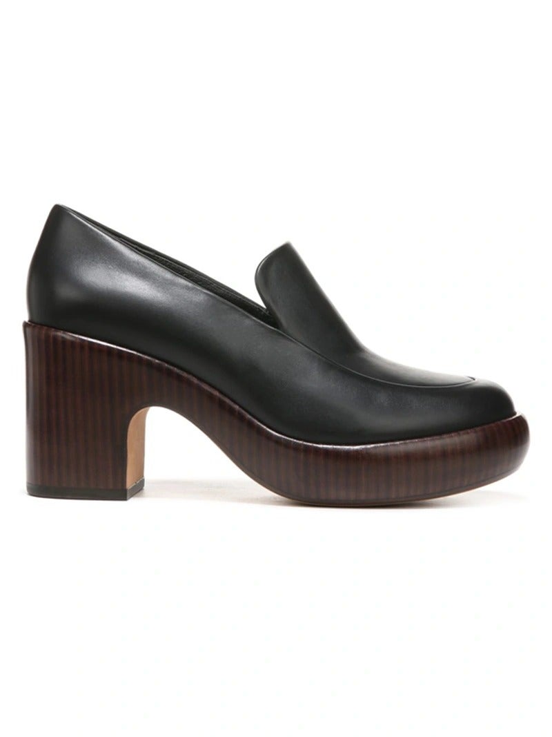 Vince Narissa Women's Black Leather Heeled Loafers Clogs Size 10 M