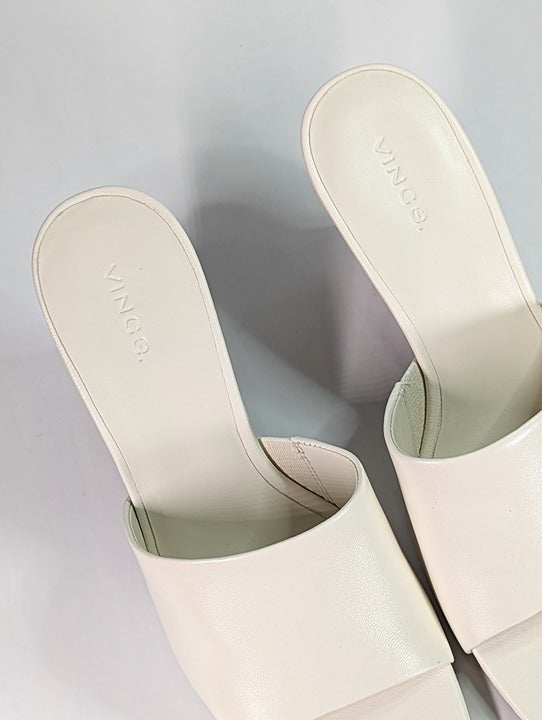 Vince Women's Pia Wedge Mule Sandals Milk Leather Size 9.5 M